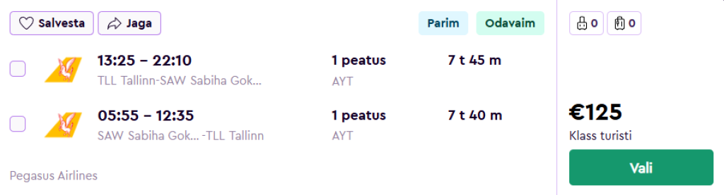 Pegasus pakub hetkel väga hea hinnaga lennupileteid Türgi kultuursesse suurlinna. Edasi-tagasi lennupiletid Tallinnast Istanbuli on saadaval alates 125€ eest.