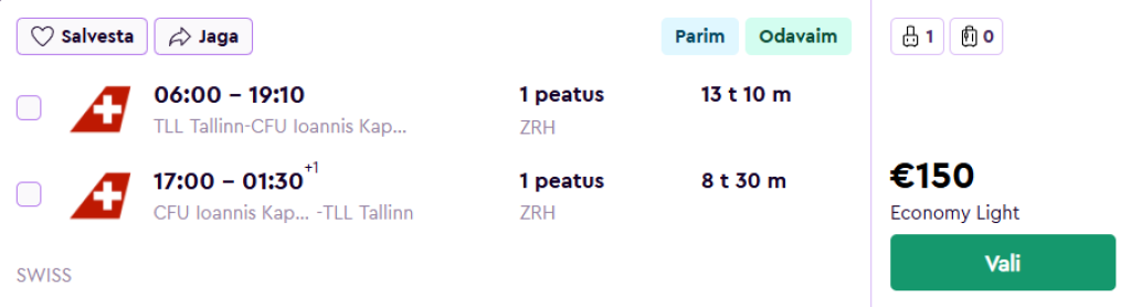 Lufthansaga koostöös SWISSiga pakuvad hetkel suurepärase hinnaga lennupileteid Kreekasse. Edasi-tagasi lennupiletid Tallinnast Korfu saarele on saadaval alates 150€ eest.