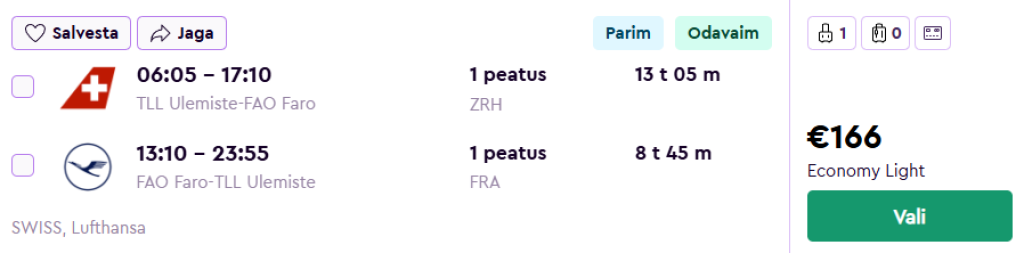 Lufthansa koostöös SWISSiga pakuvad hea hinnaga lennupileteid Lõuna-Portugali, Algarve piirkonda. Edasi-tagasi lennupiletid Tallinnast Farosse on saadaval alates 166€ eest.