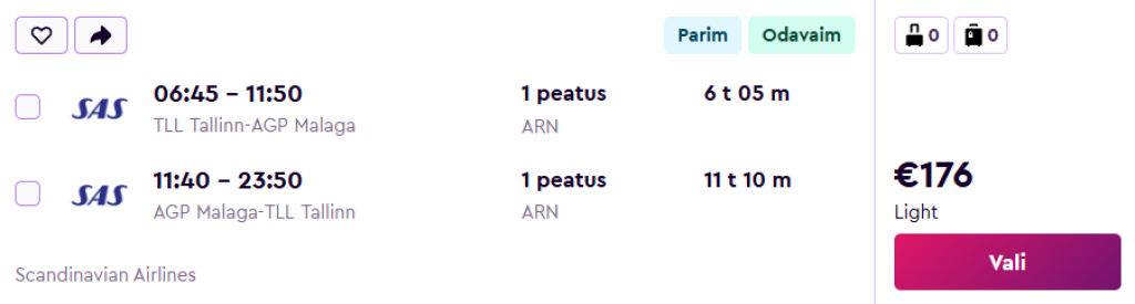 SAS pakub hetkel suurepärase hinnaga lennupileteid Lõuna-Hispaania rannikule, Andaluusiasse. Edasi-tagasi lennupiletid Tallinnast Malagasse on saadaval alates 176€ eest.