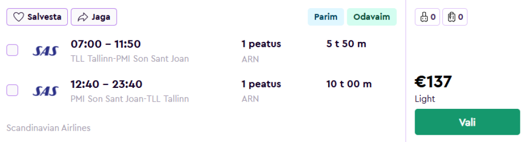 SAS pakub hetkel suurepärase hinnaga lennupileteid Vahemere saarele, Hispaaniasse. Edasi-tagasi lennupiletid Tallinnast Mallorcale on saadaval alates 137€ eest.