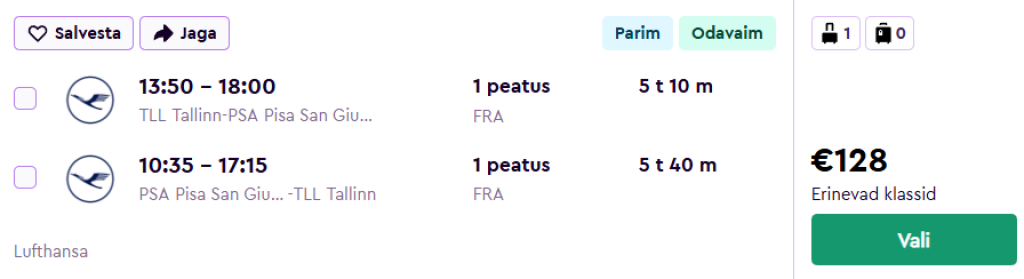 Lufthansa pakub hetkel suurepärase hinnaga lennupileteid Itaaliasse, Toskaana piirkonda. Edasi-tagasi lennupiletid Tallinnast Pisa linna on saadaval alates 128€ eest.