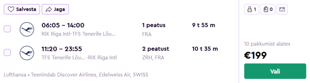 Star Alliance´i lennufirmad pakuvad hea hinnaga lennupileteid Kanaaridele. Edasi-tagasi lennupiletid Riiast Tenerife saarele on saadaval alates 199€ eest.