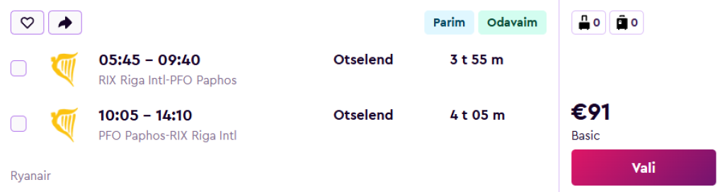Riia - Paphos - Riia alates 91€