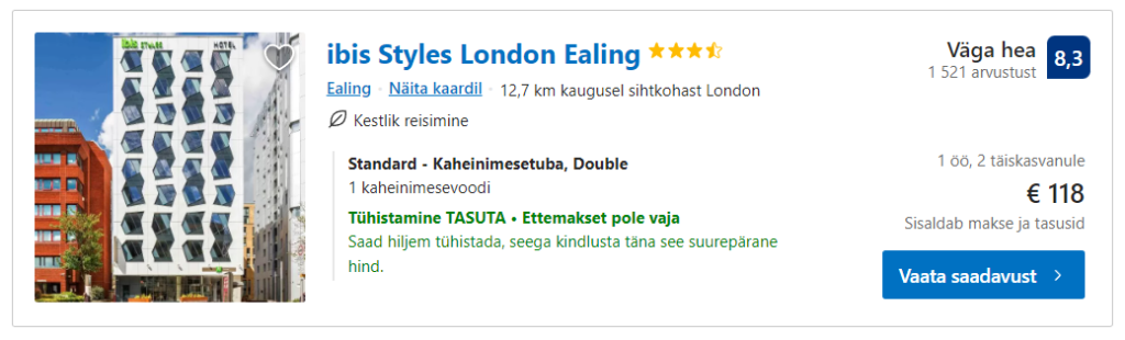 Kui otsid soodsa hinnaga majutust Londonis, siis soovitame parima ülevaate ja hinna saamiseks kasutada hotellihindade võrdlusportaali Booking.com