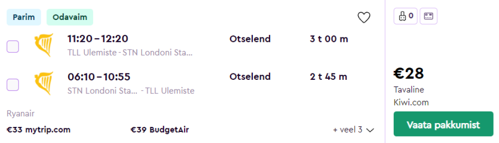 Ryanair pakub hetkel suurepärase hinnaga lennupileteid kevadel Suurbritanniasse. Edasi-tagasi lennupiletid otselendudele Tallinnast London Stanstedi lennujaama on saadaval alates 28€ eest. Soodsa hinnaga lennupileteid leidub märtsist maini. Piletiteni jõudmiseks kliki allpool välja toodud näidiskuupäevadel või otsi endale sobivad lennupiletid üles läbi Momondo.ee