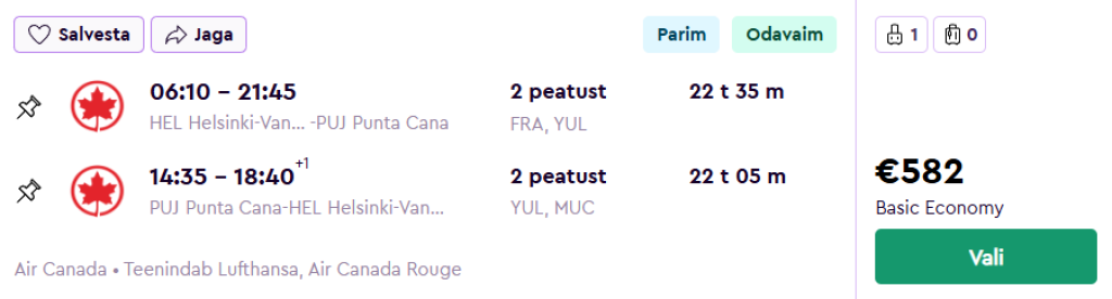 Air Canada koostöös Lufthansaga pakuvad hetkel suurepärase hinnaga lennupileteid Kariibi mere saarele, Dominikaani Vabariiki. Edasi-tagasi lennupiletid Helsingist Punta Canasse on saadaval alates 582€ eest.