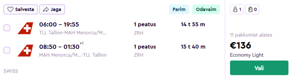 SWISS pakub hetkel suurepärase hinnaga lennupileteid kõrghooajal Hispaaniasse, Vahemere saarele. Edasi-tagasi lennupiletid Tallinnast Menorcale on saadaval alates 136€ eest.