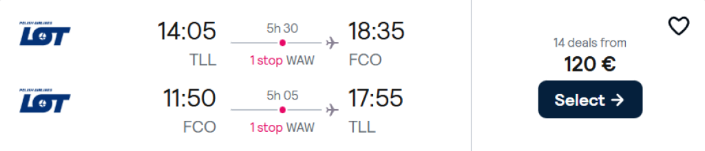 LOT pakub hetkel suurepärase hinnaga lennupileteid Itaaliasse. Edasi-tagasi lennupiletid Tallinnast pealinna Rooma on saadaval vaid 120€ eest.