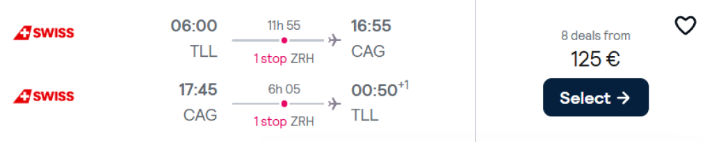 Lufthansa koostöös SWISSiga pakuvad hetkel suurepärase hinnaga lennupileteid Itaalia saarele, Sardiiniasse. Edasi-tagasi lennupiletid Tallinnast Cagliarisse on saadaval alates 125€ eest.