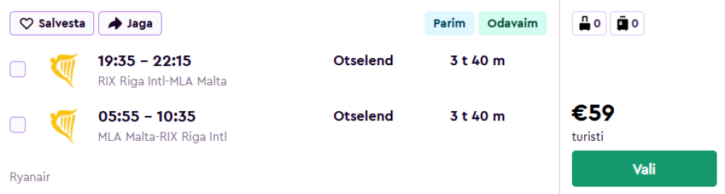 Ryanair pakub hetkel väga hea hinnaga lennupileteid Vahemere saarele. Edasi-tagasi otselennud Riiast Maltale on saadaval alates 59€ eest.