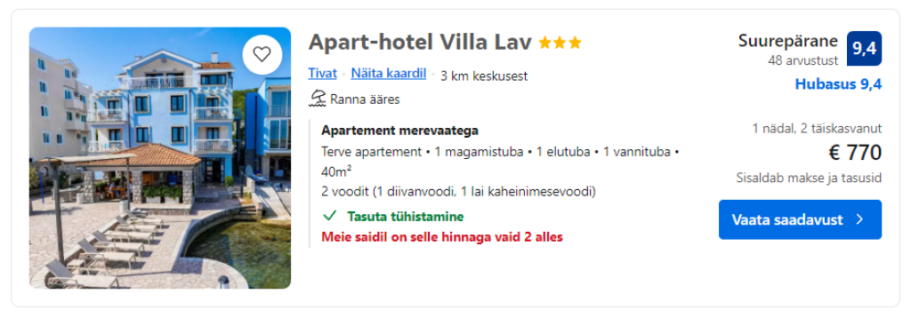 Klikkides Booking.com ning broneerides sealtkaudu oma majutuse Tivatis või mujal Montenegros, toetate te Trip.ee lendude sooduspakkumiste rubriiki.