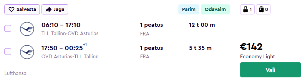 Lufthansa pakub hetkel suurepärase hinnaga lennupileteid Hispaania põhjarannikule, Astuuria piirkonda. Edasi-tagasi lennupiletid Tallinnast Astuuria lennujaama, mis asub Oviedo linnast 50km Biskaia lahe ääres, on saadaval alates 142€ eest.