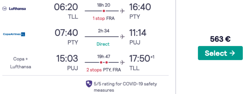 Lufthansa ning Copa Airlines pakuvad hetkel väga hea hinnaga lennupileteid kevadeks külastamaks ühel reisil nii Panamat kui Dominikaani Vabariiki. Lennupiletid marsruudil Tallinn-Panama-Punta Cana-Tallinn on saadaval alates 563€ eest. Saadavust leiab märtsist kuni juuni alguseni. Lennupiletite hinna sees on nii toitlustamine lennufirmade pardal kui äraantav pagas. Toome allpool välja näidiskuupäevad kuskil 2-3 nädalasteks reisideks ja jagasime reisiaja Panamas ning Dominikaani Vabariigis enamjaolt võrdselt. Saadavust leiab teistel kuupäevadel ning ka veetmaks emb-kummas sihtkohas pikem/lühem puhkus. Lennupiletite otsimiseks sisesta endale huvipakkuvad lennukuupäevad Skyscanneri multi-city otsingusse