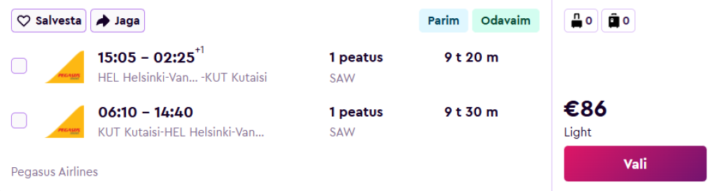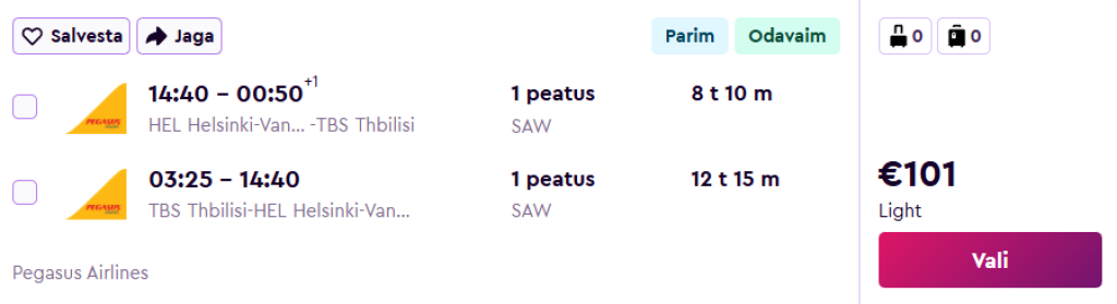 Pegasus pakub hetkel suurepärase hinnaga lennupileteid kevadel Gruusiasse. Valikus on Gruusia pealinn Tbilisi ja Kutaisi ning edasi-tagasi lennupiletid Helsingist on saadaval alates 86€ eest.