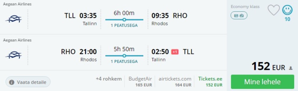 Tallinn – Rhodos – Tallinn al. 152€