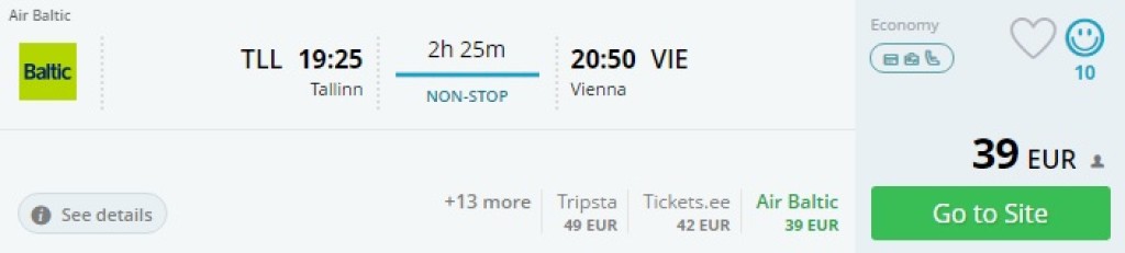 AirBaltic pakub kevadel otselende Tallinnast Viini hinnaga 100€. Sellise hinnaga pileteid on saada lendudele aprilli lõpust juuni alguseni. Ühe suuna piletid Viini on leitavad 39 euroga.