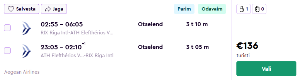 Aegean pakub hetkel väga hea hinnaga suveks lennupileteid Kreekasse. Edasi-tagasi otselennud Riiast pealinna Ateenasse on saadaval alates 136€ eest.