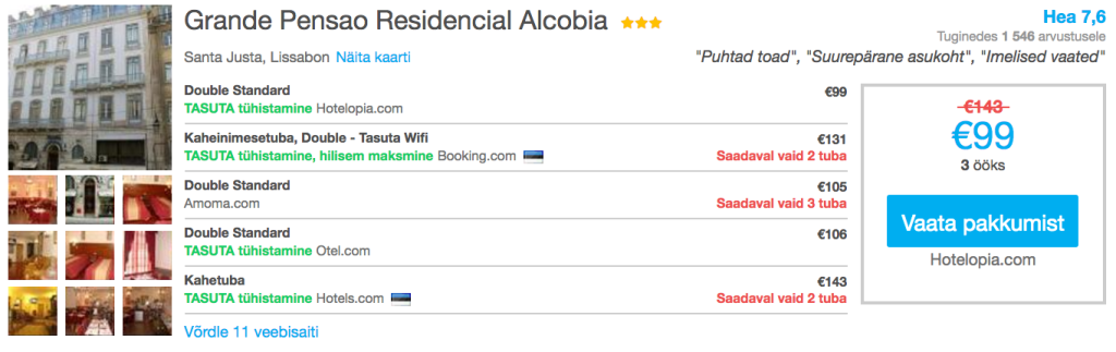 Hotellipakkumised LissabonisParima hinnaga hotellipakkumised Lissabonis leiad üles läbi hotellihindade võrdlusportaali HotelsCombined.ee