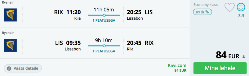 Huvi korral saab Lissabonist ka edasi lennata soodsalt mõne odavlennufirmaga kas siis Madeirale (Funchal) või Assooridele(Ponta Delgada). Tõime allpool välja ka näite.