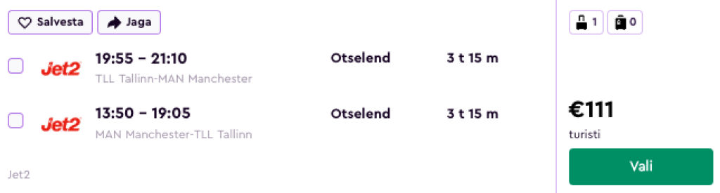Jet2 alustab alates novembri lõpust hooajalisi otselende Tallinnast Manchesteri ning pakub hetkel väga hea hinnaga lennupileteid aastavahetuseks. Soodsaimad edasi-tagasi lennupiletid on saadaval vaid 111€ eest.