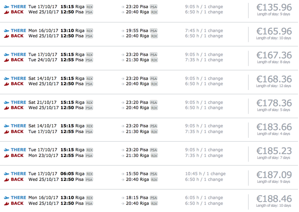 Otsisime välja võimalused veetmaks nüüd oktoobris ja novembris puhkus Toskaanas! Edasi-tagasi lennupiletid Riiast on saadaval alates 136€ eest ning Tallinnast alates 211€. Toskaanas on kaks suuremat lennujaama, Pisa ning Firenze. Riiast leiab soodsad lennupiletid Pisasse ning Tallinnast Firenzesse.
