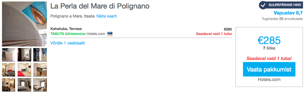 Palju teisi hotellipakkumisi leiad üles hotellihindade võrdlusportaalist HotelsCombined.ee