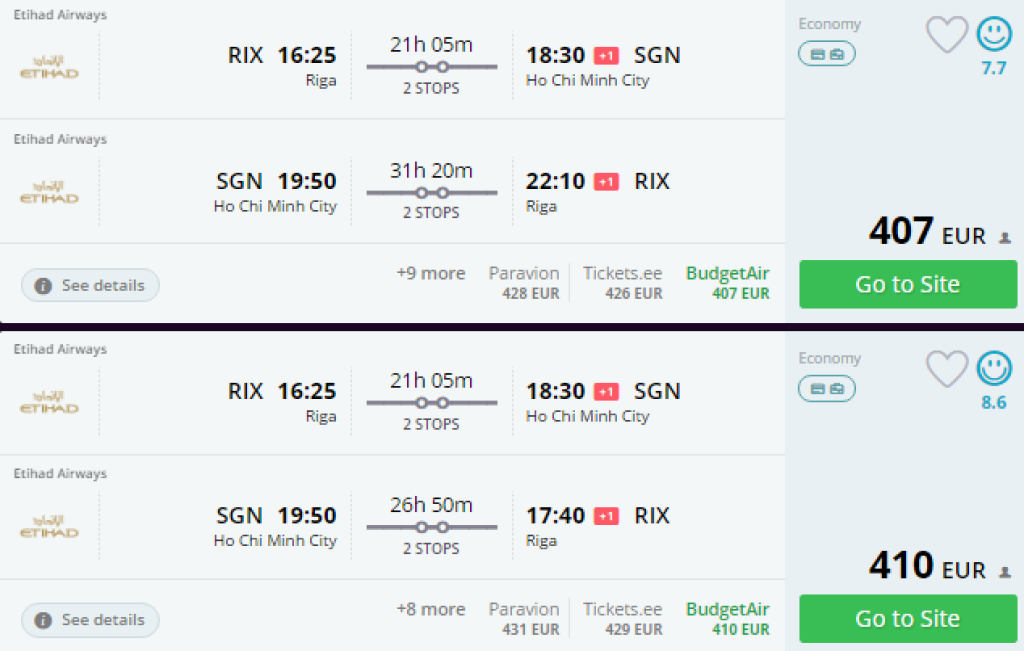 5* lennufirma Etihad pakub väga soodsaid lende Riiast Vietnami, Ho Chi Minh Citysse hinnaga alates 407€. Lennud on kahe ümberistumisega ning saadavus detsember kuni mai. Soodsad lennupiletid leiad läbi momondo või kasuta otselinke allpool.
