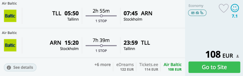 Otsi lennupiletid Tallinnast Stockholmi läbi Momondo.com