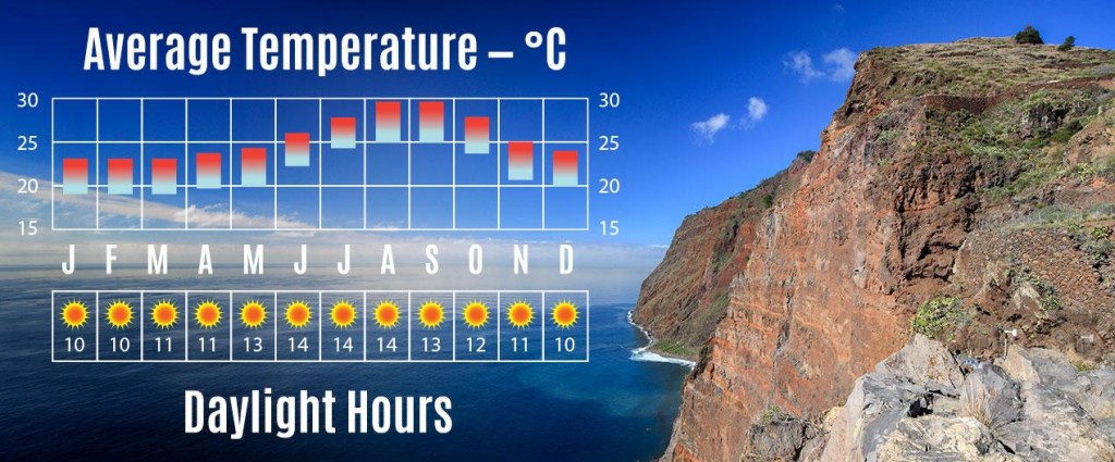 Madeira kliimat mõjutab Golfi hoovus ja seetõttu on seal ka talved pehme kliimaga. Ööpäeva keskmine õhutemperatuur on 17 – 19 Cº.
