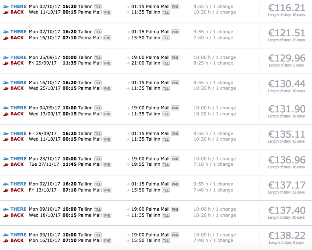 Otsisime välja soodsa võimaluse pikendada suve Vahemeres asuval Mallorca saarel. Edasi-tagasi lennupiletid Tallinnast Palmasse on saadaval vaid 116€ eest. Soodsaid lennukuupäevi leidub septembrist kuni novembrini. Tegemist on odavlennufirmade lennupiletite kombineerimisega. Allpool tõime välja ka võimaluse veeta sügise alguses minipuhkus (4ööd) Mallorcal. Lennupiletid Tallinnast Mallorcale ja hea reitinguga hotellituba Mallorcal maksavad kokku alates 218€. Ilm on siis Mallorcal veel vägagi suvine aga HotelsCombined.ee otsingumootorist on näha, et hinnad on võrreldes suvega korralikult langenud!