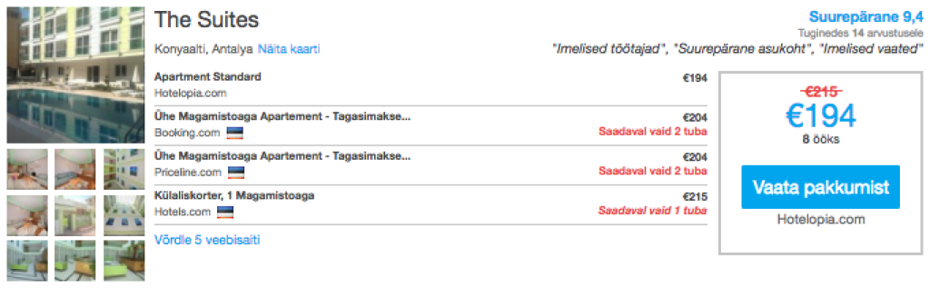 Selle ja palju teisi väga hea hinnaga hotellipakkumisi leiad üles läbi hotellihindade võrdlusportaali HotelsCombined.ee