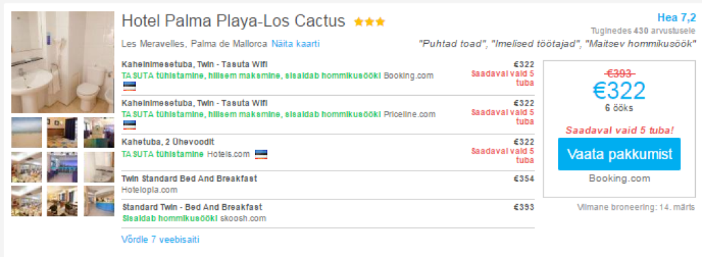 Hotellide hindu võrdle hinnavõrdlusportaalis Hotelscombined.com.