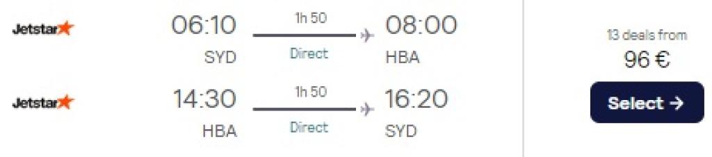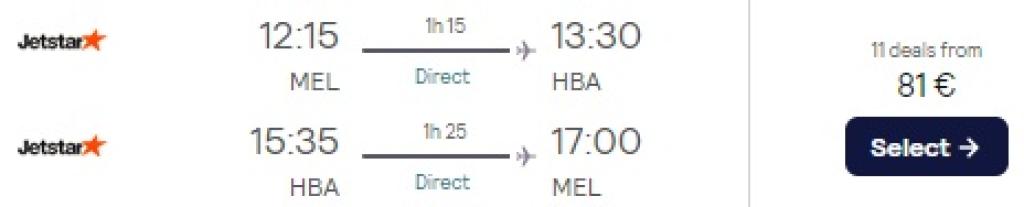 Antud lennupiletid on ka suurepäraseks võimaluseks külastada Tasmaaniat. Edasi-tagasi lennupiletid Melbourne'ist Hobartisse on saadaval al 81€ eest, Sydneyst al 96€ eest: