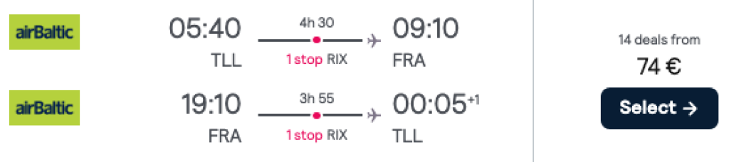 Tallinn-Frankfurt-Tallinn 07.03 - 22.03 74€