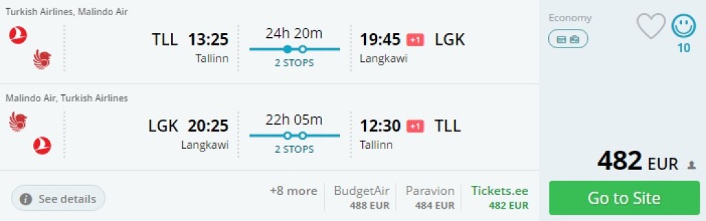 Turkish Airlines koostöös Malaisia lennufirmaga Malindo Air pakub soodsaid lennupileteid Tallinnast Malaisia puhkusesaarele Langkawile. Soodsaid pileteid leiab kuni aprillini, kui edasi-tagasi lennud on saadaval hinnaga alates 482€. Lennud on ümberistumistega Istanbulis ja Kuala Lumpuris. Soodsad lennupiletid leiad läbi momondo või kasuta broneerimiseks otselinke allpool.