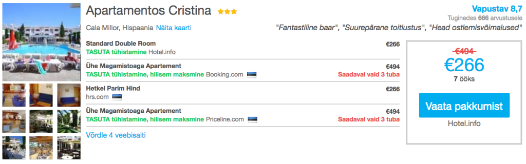 Otsisime välja variandi veetmaks nädalane puhkus vahemikus 18.10-25.10 Mallorcal.Mõlemad hotellid, mis me välja otsisime on hea reitinguga ning basseiniga 3* hotellid. Pakkumine kehtib kiirematele, sest nii hea hinnaga lennupileteid kauaks ei jätku!