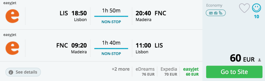 Lissabon - Funchal (Madeira) - Lissabon al. 60€