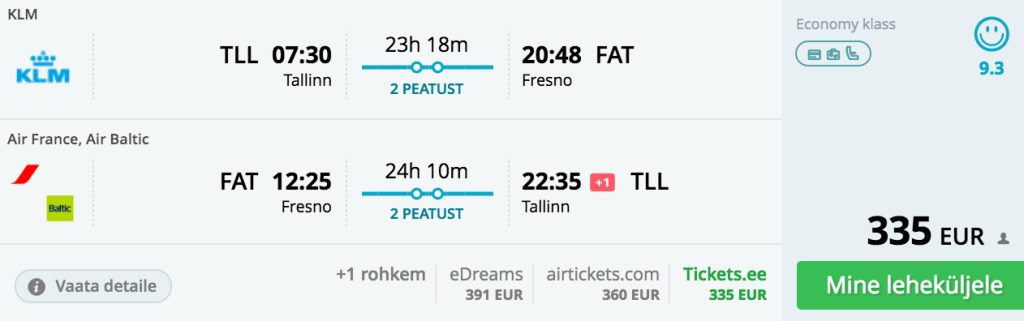 Tallinn-Fresno(Yosemite rahvuspark)-Tallinn al. 335€