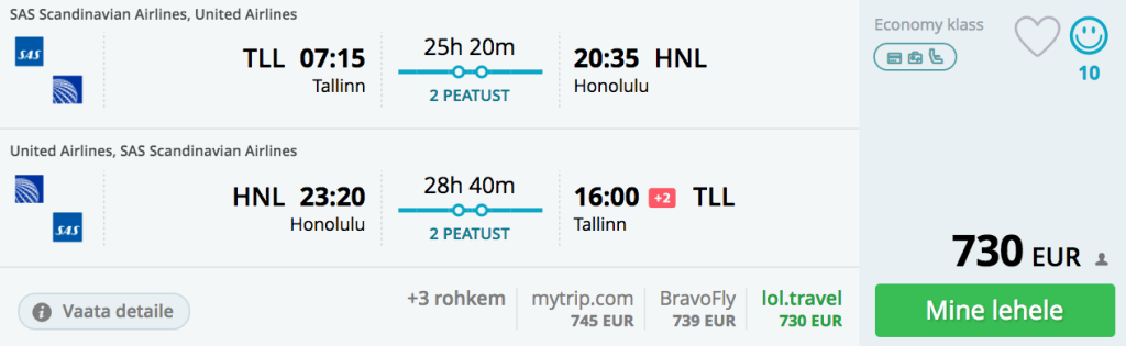 Tallinn-Honolulu-Tallinn 730€