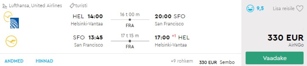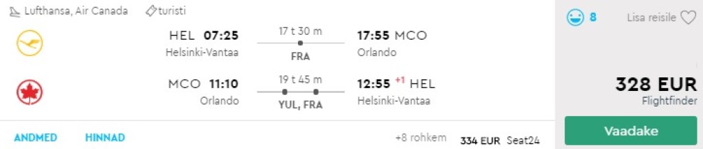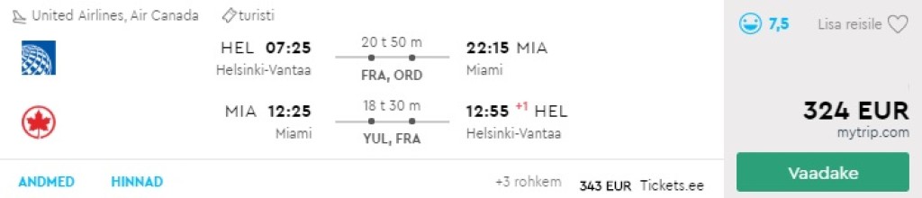 Star Alliance'i lennufirmad Lufthansa, Air Canada ja United pakuvad hetkel väga hea hinnaga lennupileteid Helsingist USA'sse. Edasi-tagasi lennupiletid on saadaval alates 312€ eest. Toome teini valiku sihtkohtadest (Miami, Orlando, Atlanta, Denver, San Francisco, Portland, Seattle), kuid soodsaid pileteid leidub ka teistesse sihtkohtadesse! Saadaval soodsaid lennukuupäevi jaanuarist aprillini (veebruaris piletid ~50€ kallimad).