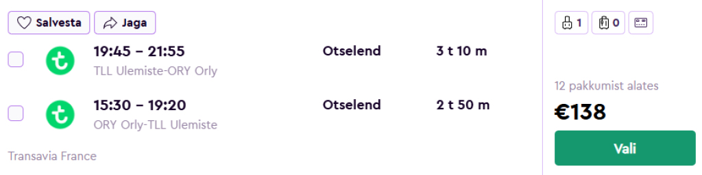Transavia pakub hetkel hea hinnaga lennupileteid suvisel ajal Prantsusmaale. Edasi-tagasi mugavad otselennud Tallinnast Pariisi Orly lennujaama on saadaval alates 138€ eest.