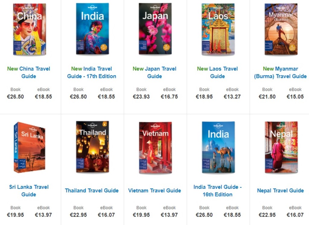 Näited Lonely Planeti Aasia reisijuhtide hindadest: