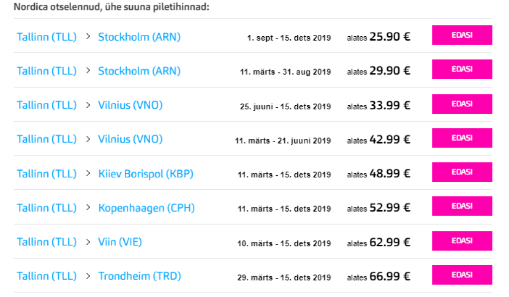 Öömüügi kampaania kestab kuni 10.02.2019Tuletame meelde, et kõikide Nordica lennupiletite hinna sees on lisaks käsipagasile ka 23kg äraantavat pagasit.