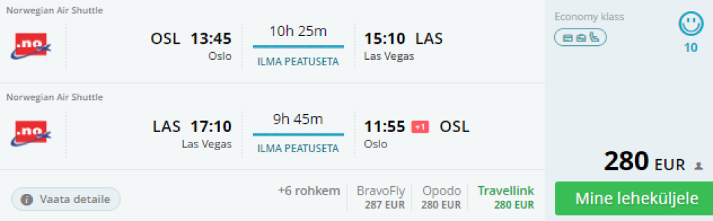 Hetkel pakkub Norwegian väga soodsaid otselende Oslost Las Vegasesse alates 280€. Saadavus detsember kuni märts.
