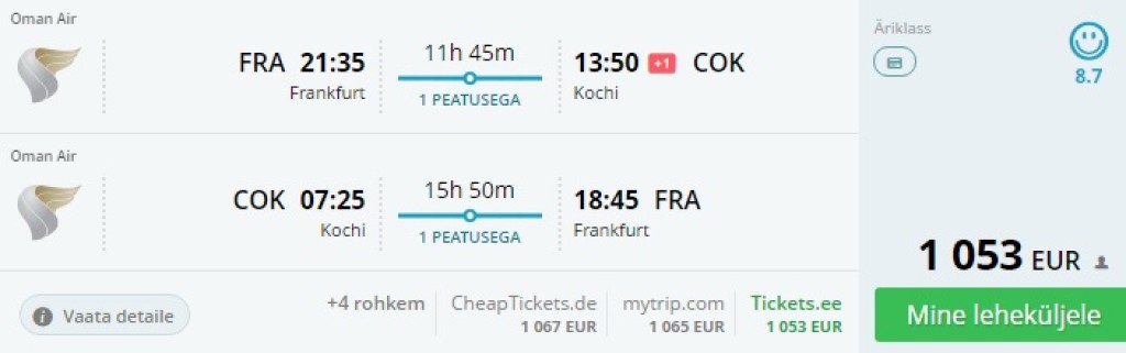Frankfurt – Kochi – Frankfurt 1053€