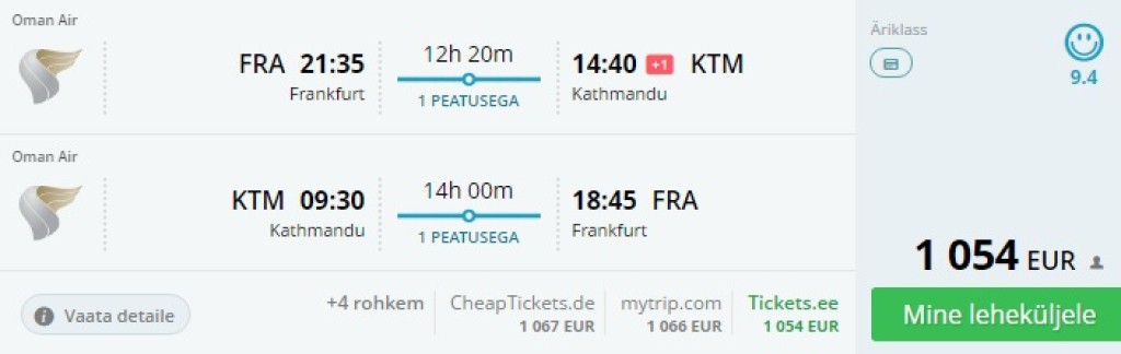 Lend korralikus äriklassis maksab kõikidest Euroopa linnadest kõikidesse sihtkohtadesse enam-vähem sama palju. Veidi üle 1000 euroseid piletieid kiirete ümberistumistega lendudele on saada lendudele septembrist detsembrini, müük kestab kuni 31. juulini. Pileteid leiab enamikel liinidel kõikidel kuupäevakombinatsioonidel, Lendudel Indiasse, Katmandusse ja Zansibarile on osadel päevadel pikem ümberistumine Muscatis, kuid väikese katsetamisega leiab kiirete ümberistumistega lennud. Järgnevad hinnanäited on algusega Frankfurdist.