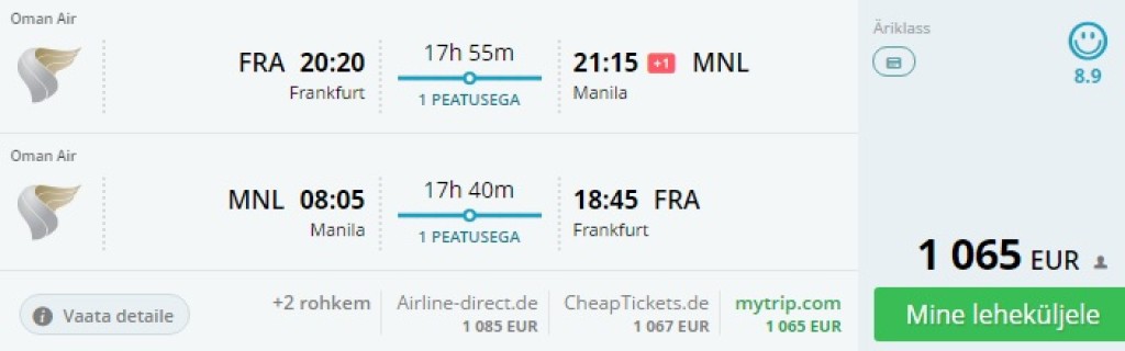 Frankfurt – Manila – Frankfurt 1065€