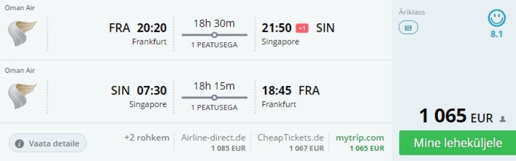 Frankfurt – Singapur – Frankfurt 1065€
