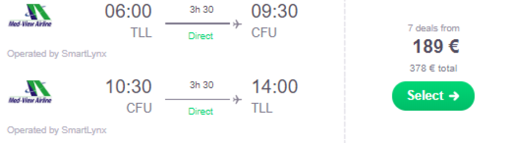 Hetkel leiad suurepärase hinnaga lennupileteid Tallinnast Korfu saarele. Edasi-tagasi lennupiletid leiab üles vaid 189€ eest. Tegemist on otselendudega ning hinnas sisaldub äraantav pagas. Saadaval soodsad lennupiletid vahemikus 11.06-18.06. Soodsate lennupiletiteni jõudmiseks kliki allpool olevatel lennukuupäevadel.